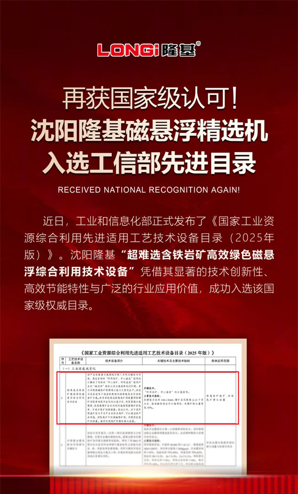 再獲國家級認可!沈陽隆基磁懸浮精選機入選工信部先進目錄